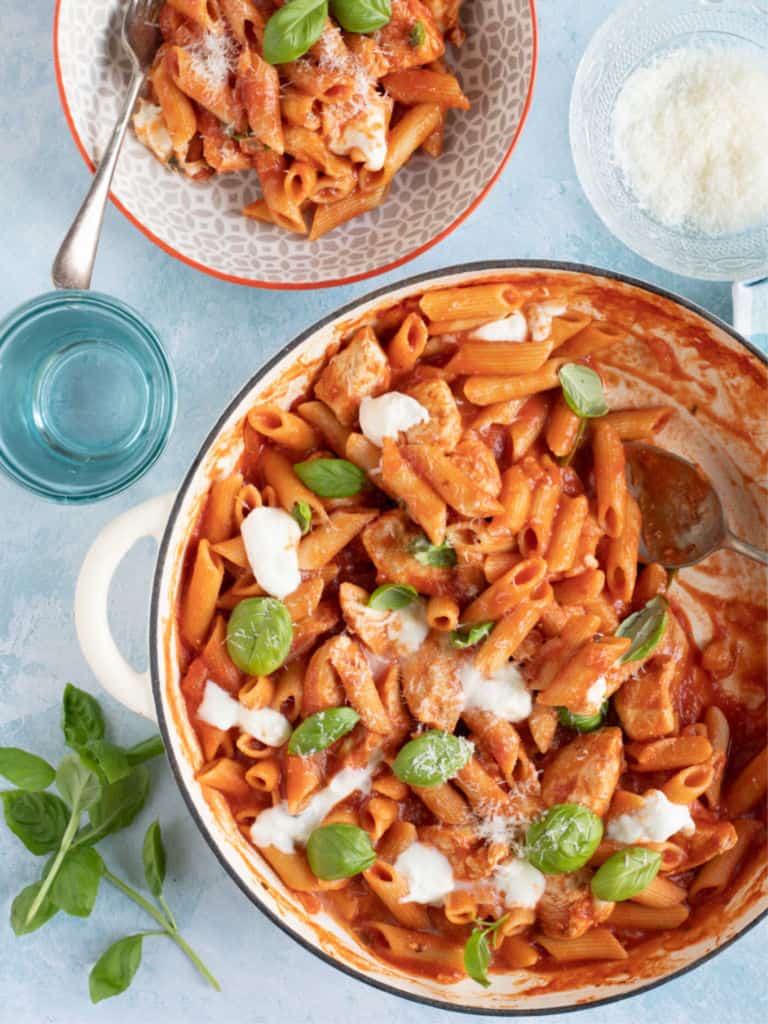 Cook this delicious and spicy chicken arrabbiata pasta in one pan! The penne pasta cooks in the spicy arrabbiata sauce, so there's no need to boil it separately.
